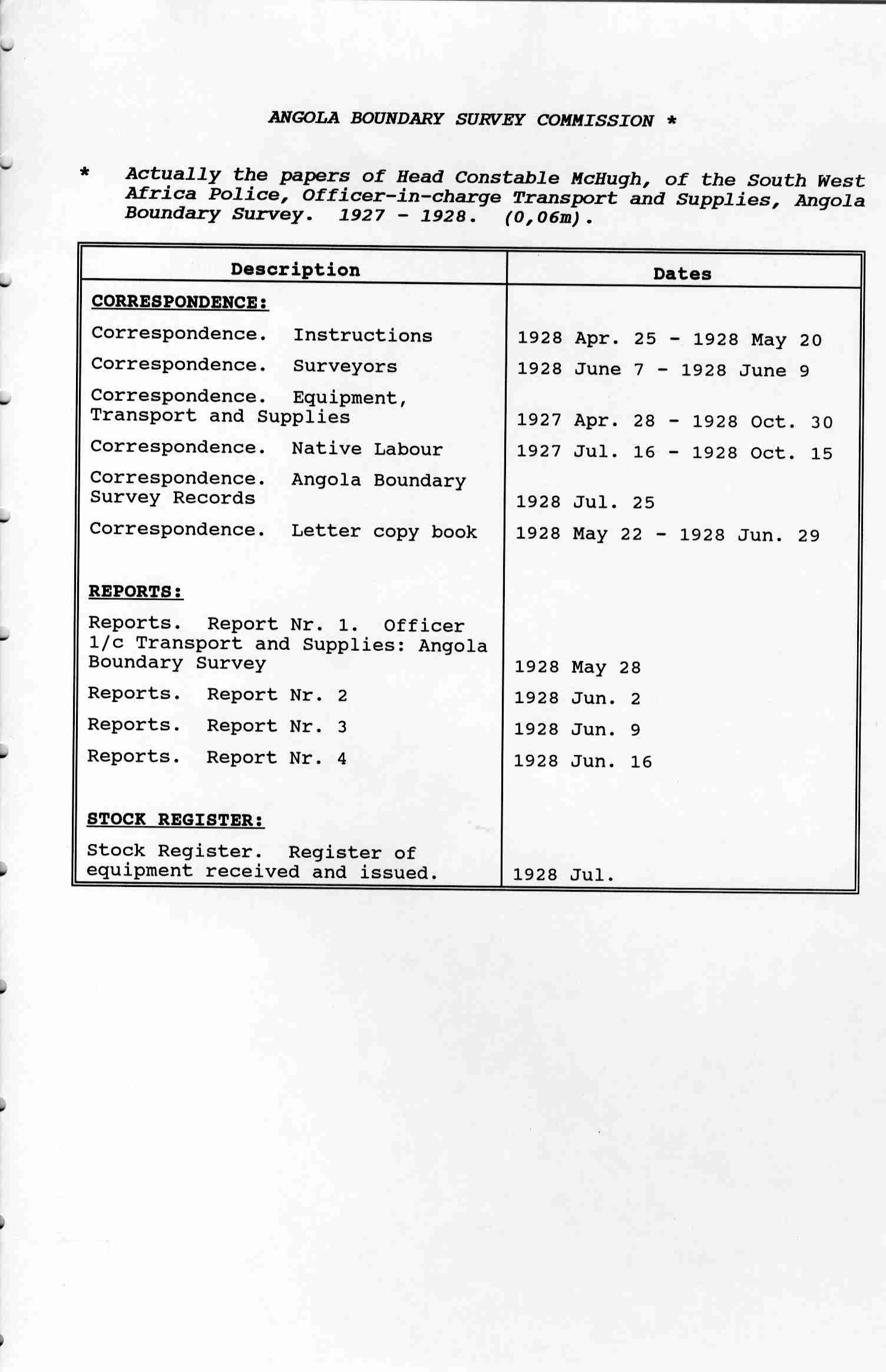 | ABS | Angola Boundary Survey | 1927-1928 | 0001 | 1/1/071 | |